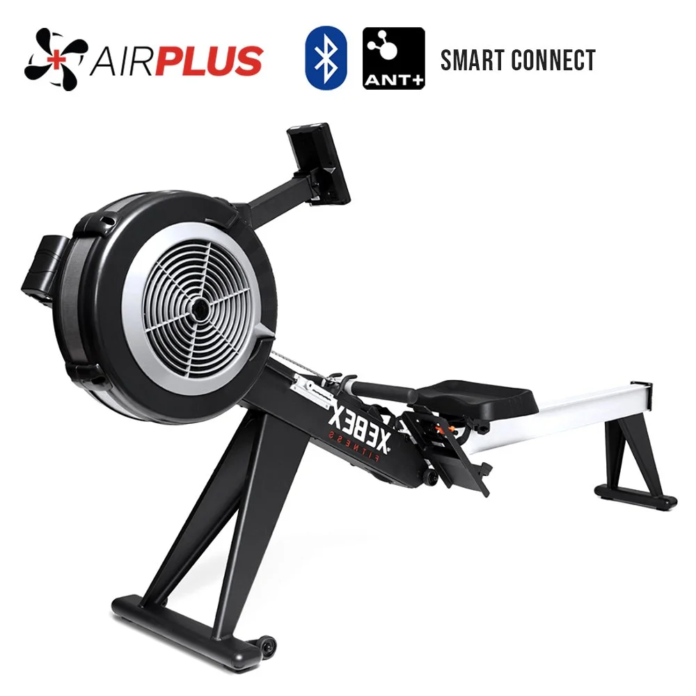 The Xebex AirPlus Rower 4.0 Smart Connect features a heavy duty 93LB frame, 10-setting damper to control air resistance and flow,adjustable magnetic resistance from levels 1 to 8, more comfortable seat and seat height, as well as the ability to fold into less than 50% of its original footprint and roll into storage on 4 wheels.